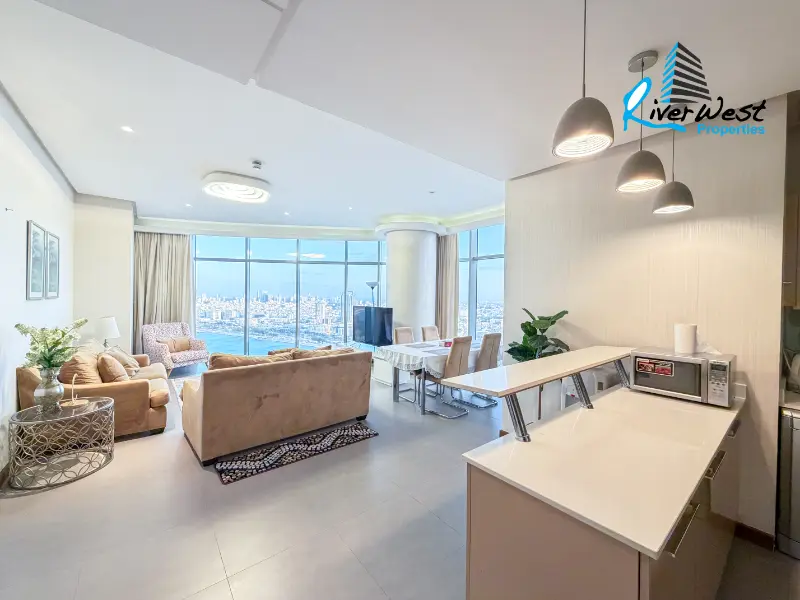 Enjoy luxurious living in this grand 1-bedroom apartment in the prestigious Seef area. It offers two modern bathrooms, a spacious balcony with stunning sea views, and a bright, open layout. This apartment is perfect for tenants seeking comfort and elegance.