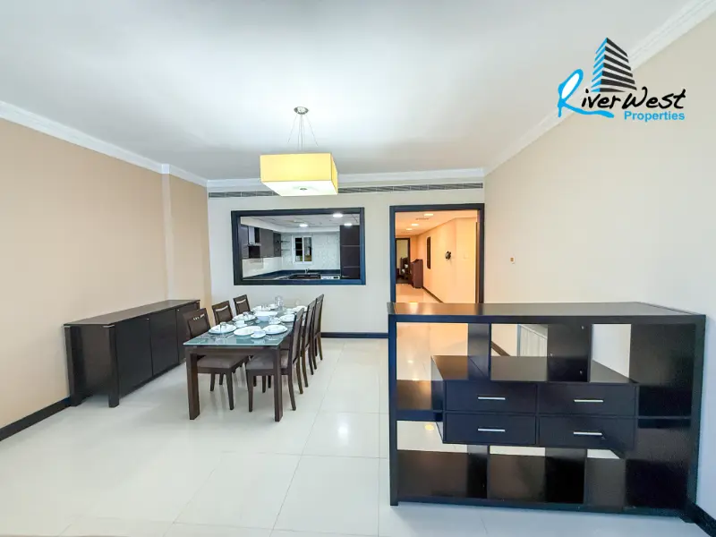 This spacious 3-bedroom apartment with full sea view in Juffair offers a perfect combination of space, comfort, and hotel-style services. With a total size of approximately 180 sqm, the apartment features a bright living room, dining area, and large windows that showcase stunning sea views.
