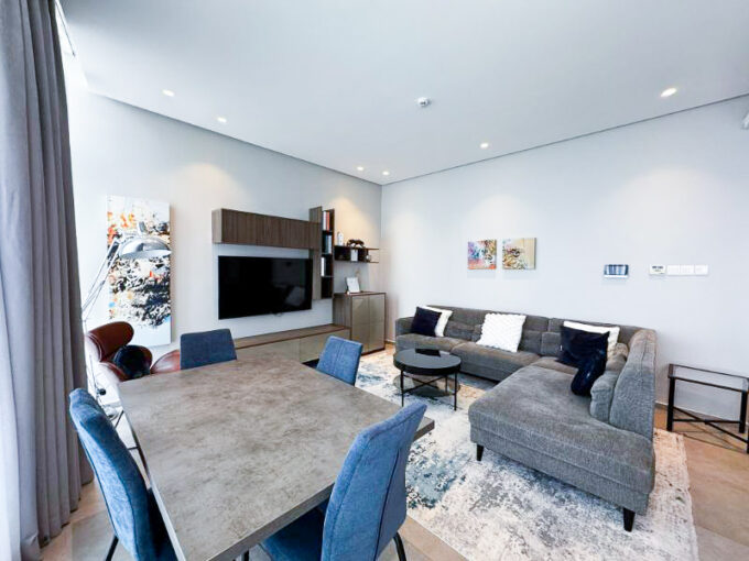 This freehold 1-bedroom apartment in Marassi Park offers a fantastic opportunity to own a home in one of Bahrain’s most prestigious waterfront developments. With a total size of 60 sqm, the apartment features a smart layout, a private balcony with pool view, and a bright living space.