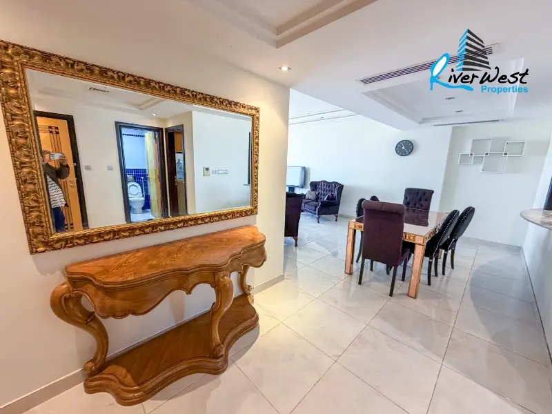 This well-maintained fully furnished 2-bedroom apartment in Abraj Al Lulu offers a comfortable and practical living environment in a convenient residential setting. Designed for modern lifestyles, the apartment features a spacious living and dining area, quality furnishings, and three bathrooms, providing added comfort and privacy.
