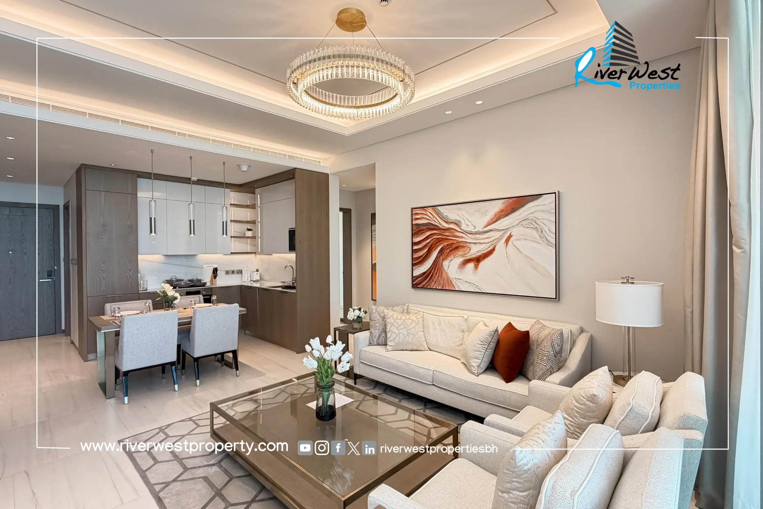This luxury 2-bedroom apartment in Onyx, Bahrain Bay offers premium waterfront living with stunning sea views and modern design. With a total size of 98 sqm, the apartment features a bright layout, a private balcony, and elegant interiors that provide both comfort and sophistication.