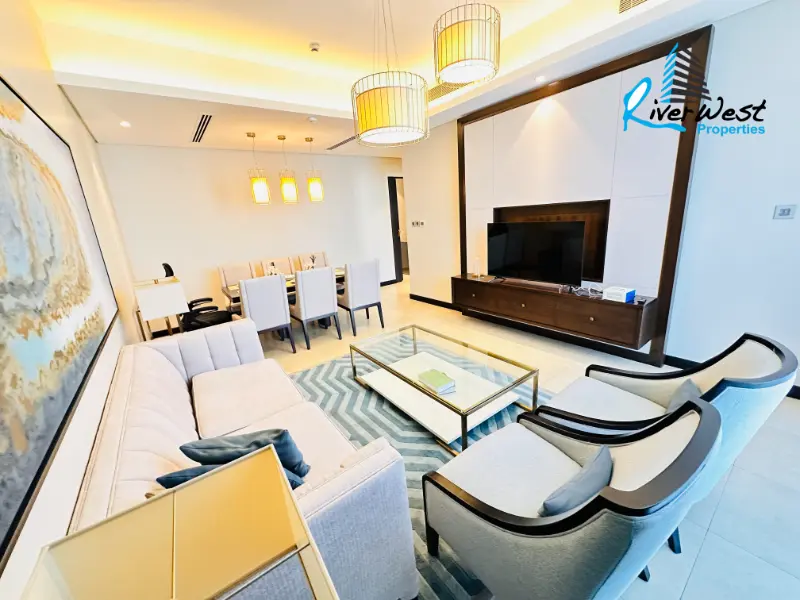 Looking for a premium 2 bedroom flat for rent in Juffair? This stunning 149sqm apartment is the ideal choice for residents seeking a blend of luxury and comfort. Situated on a high floor, the property boasts incredible sea and city views and is fully fitted with royal modern furnishing.