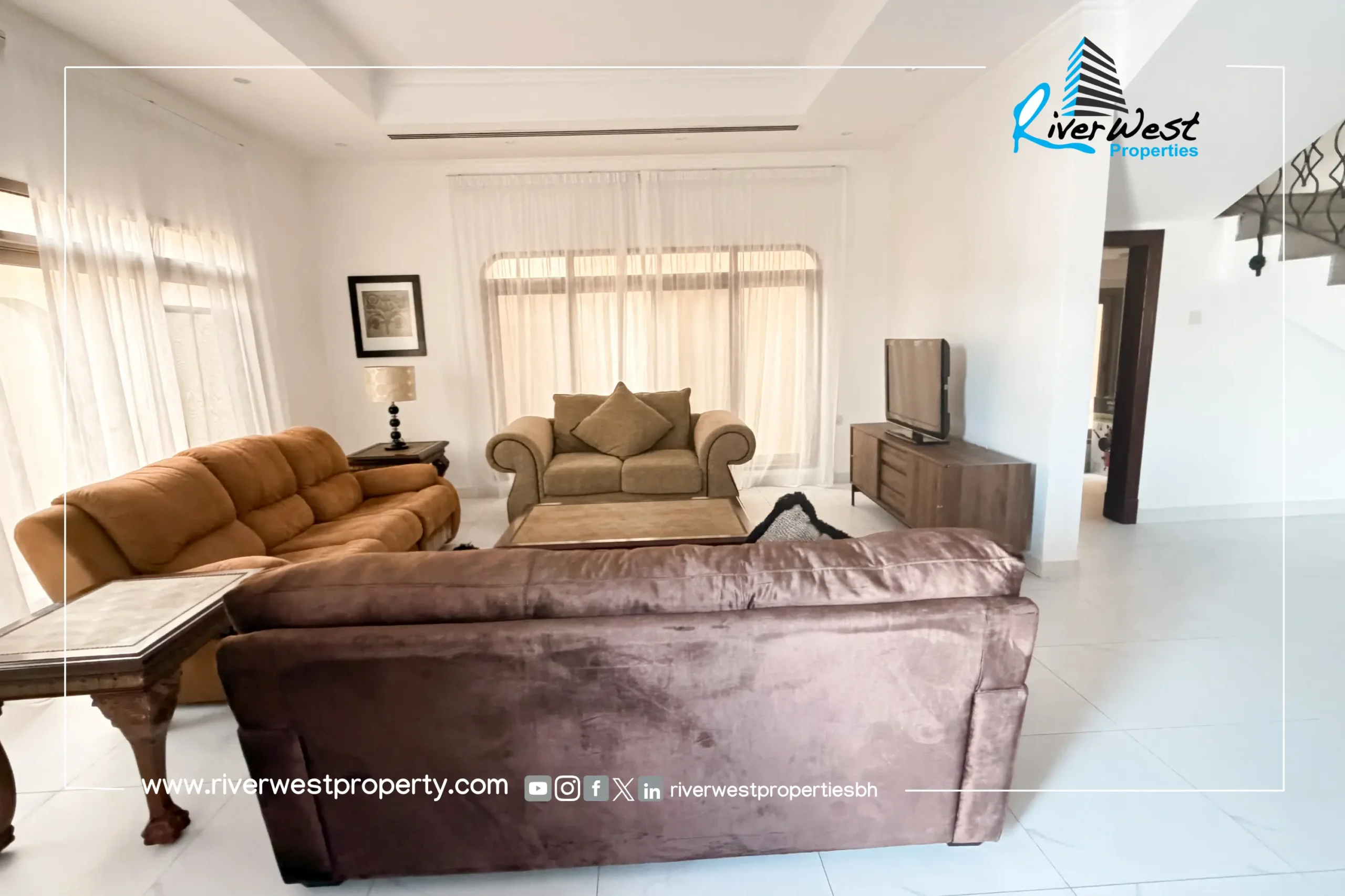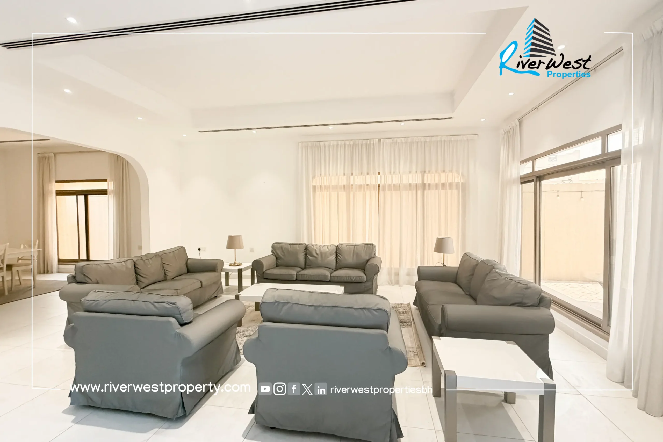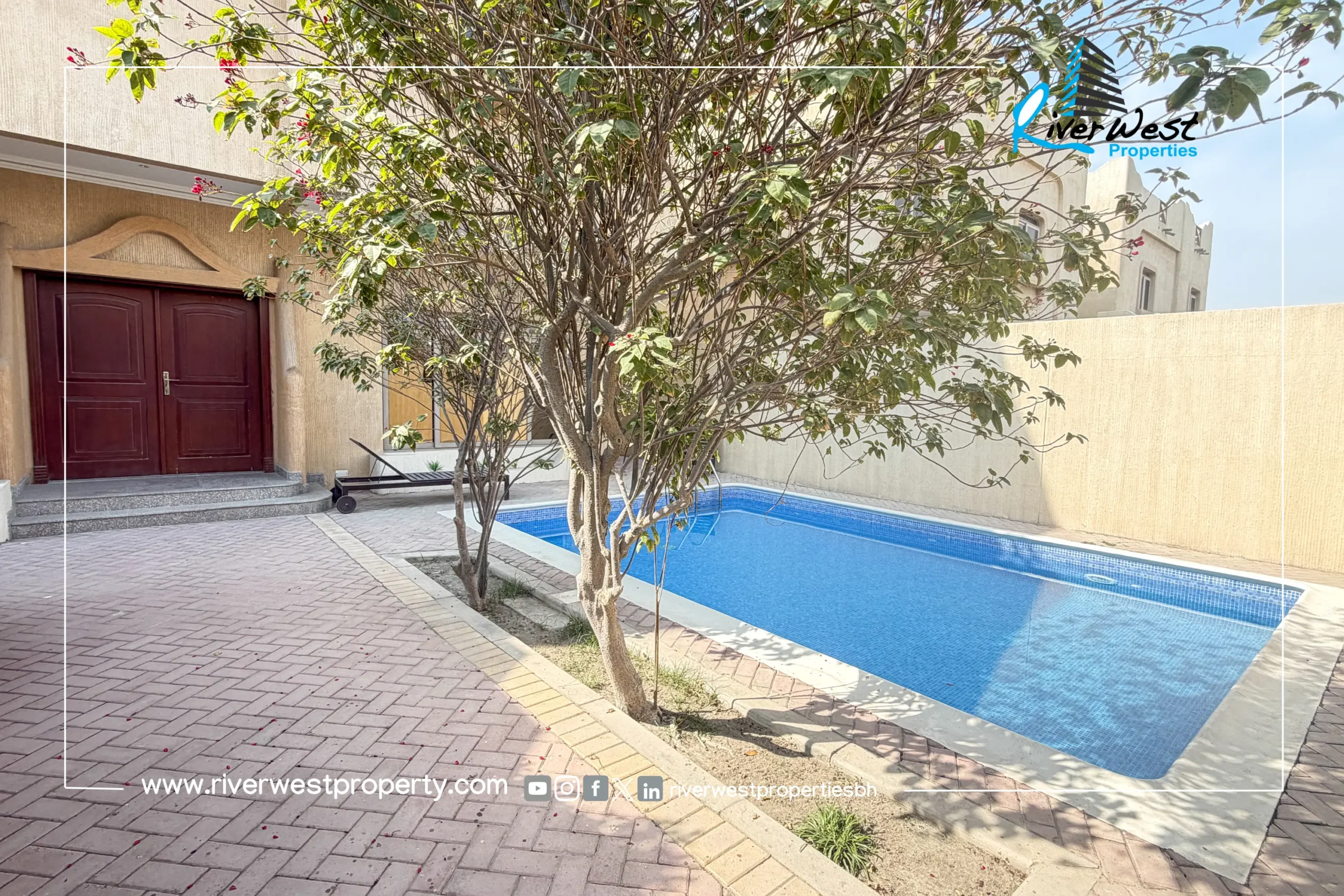 This villa is perfect for families seeking a private home with premium facilities, a swimming pool, and compound living in one of Bahrain’s most popular residential districts.