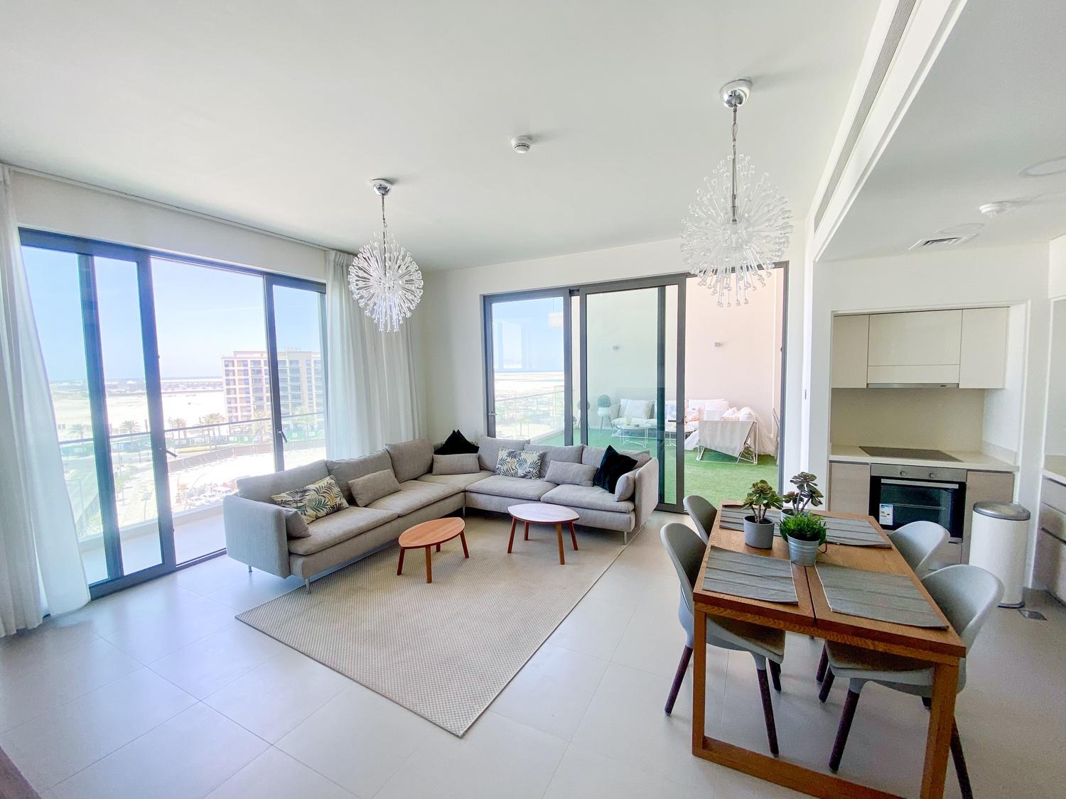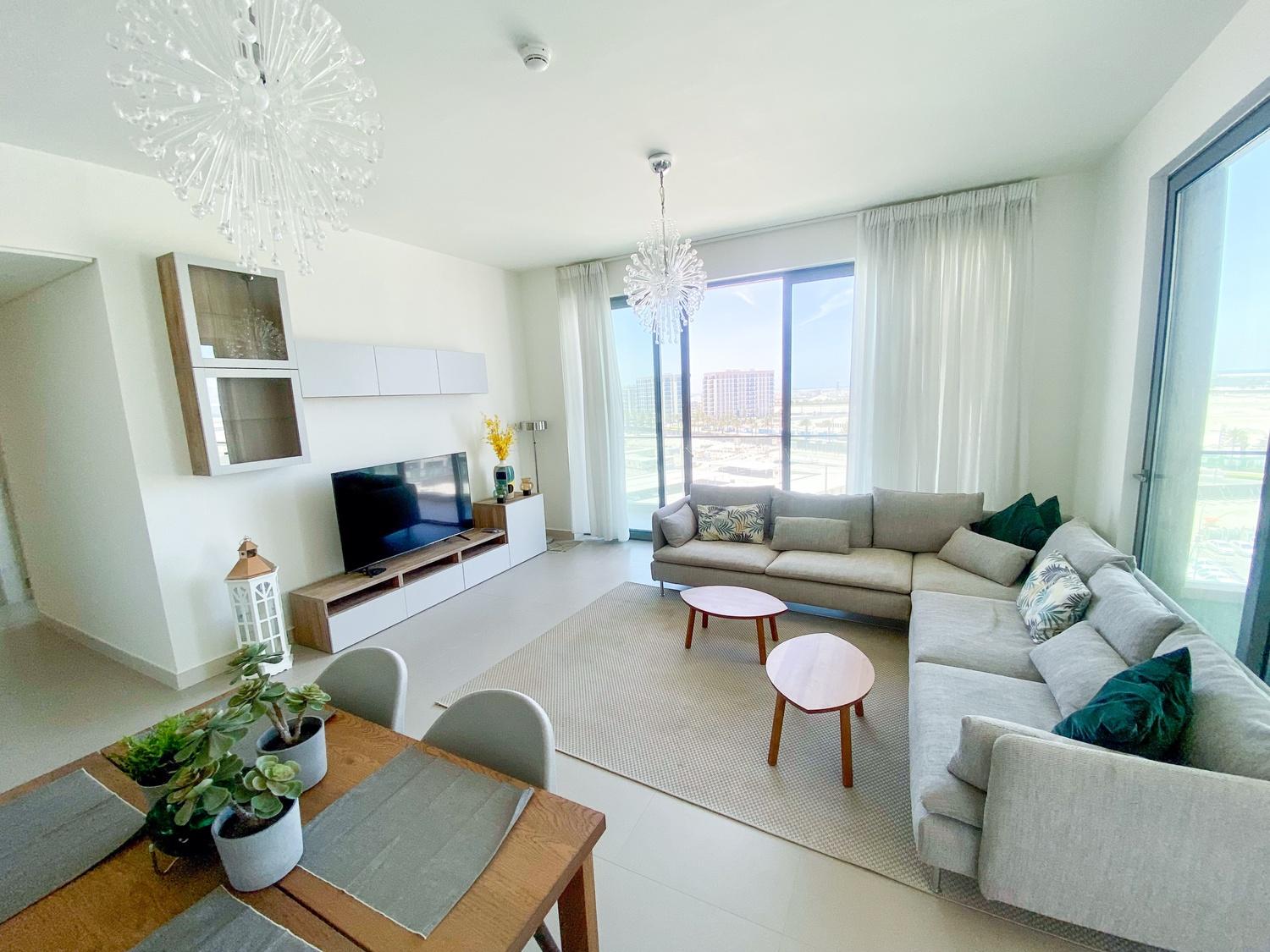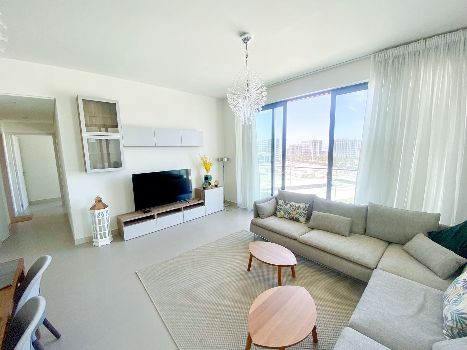 This modern Marassi Shores 2 bedroom apartment offers resort-style beachfront living just steps away from the 2KM Marassi beach. The unit features a bright living area, open kitchen with built-in appliances, 2 bathrooms, balcony, and central AC. Residents enjoy access to premium lifestyle amenities including a pool, gym, kids play area, and direct beach access. Located beside Marassi Galleria Mall and Vida Resort, this home is perfect for those seeking a relaxed, coastal living experience.