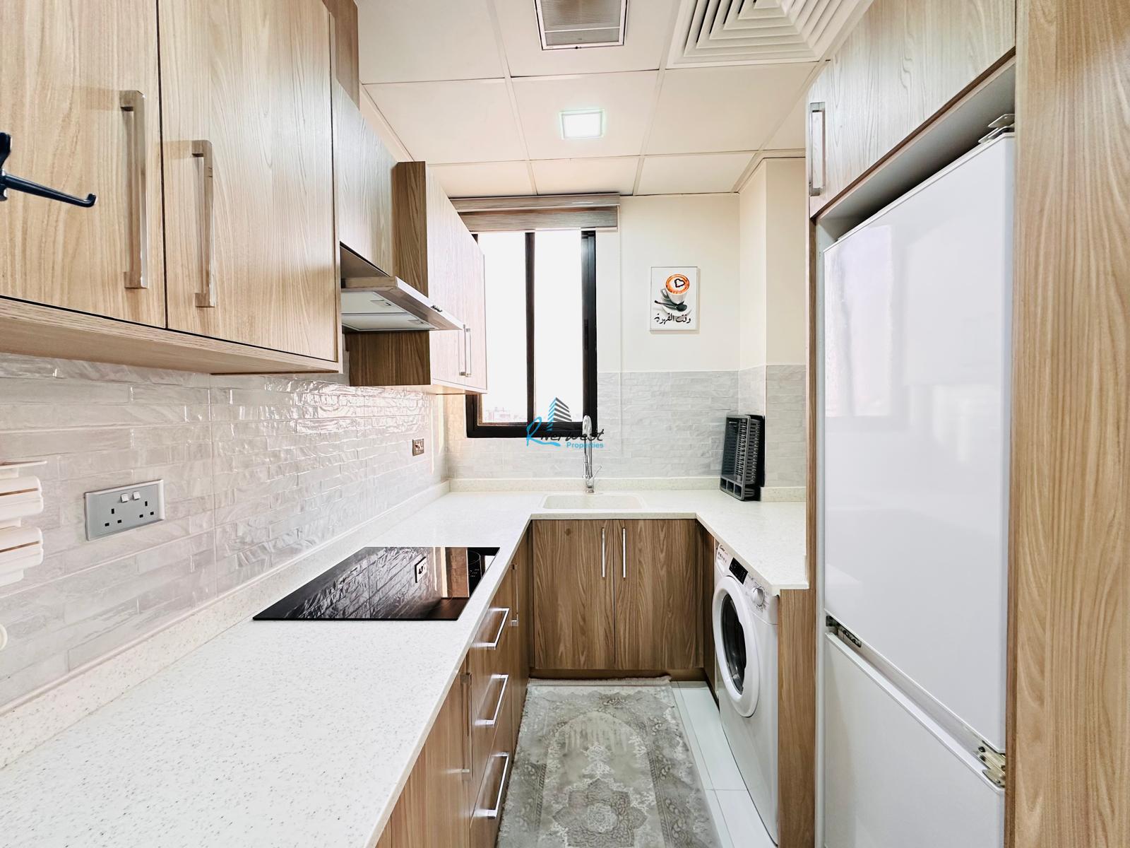 Modern and bright, this fully furnished 1-bedroom apartment offers comfort and convenience in the heart of Janabiyah, just steps from El Mercado Mall.
