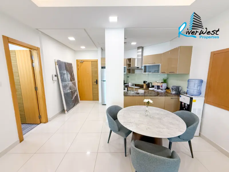 This modern 1-bedroom apartment in Juffair is located in a new residential tower and offers a smart, functional layout ideal for contemporary living. With a total size of approximately 66 sqm, the apartment features a spacious living and dining area, balcony, and an open fully equipped kitchen.