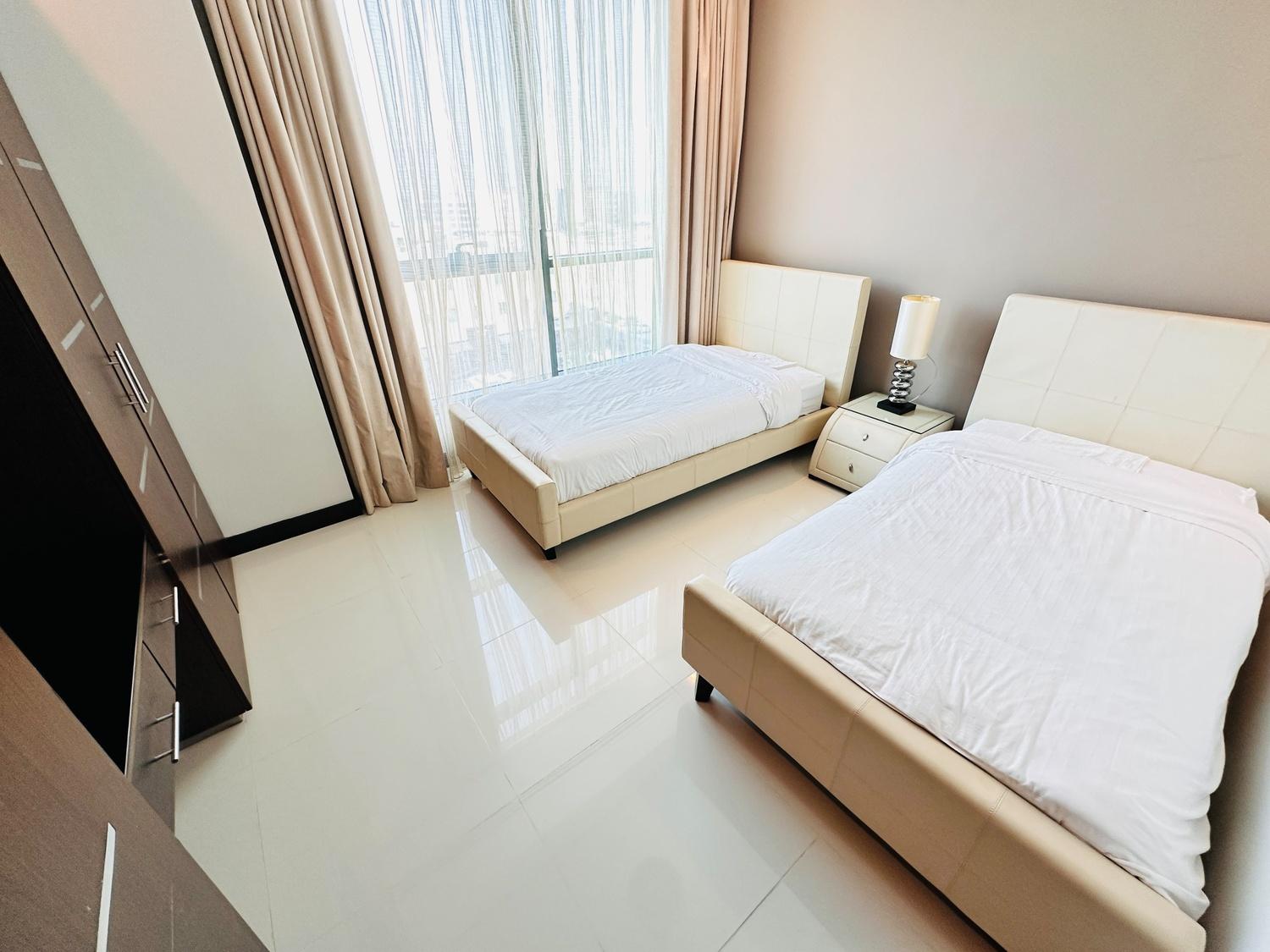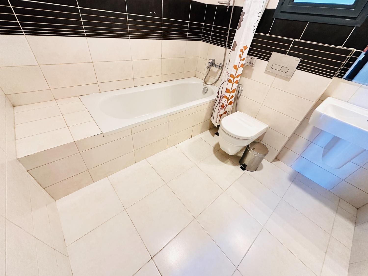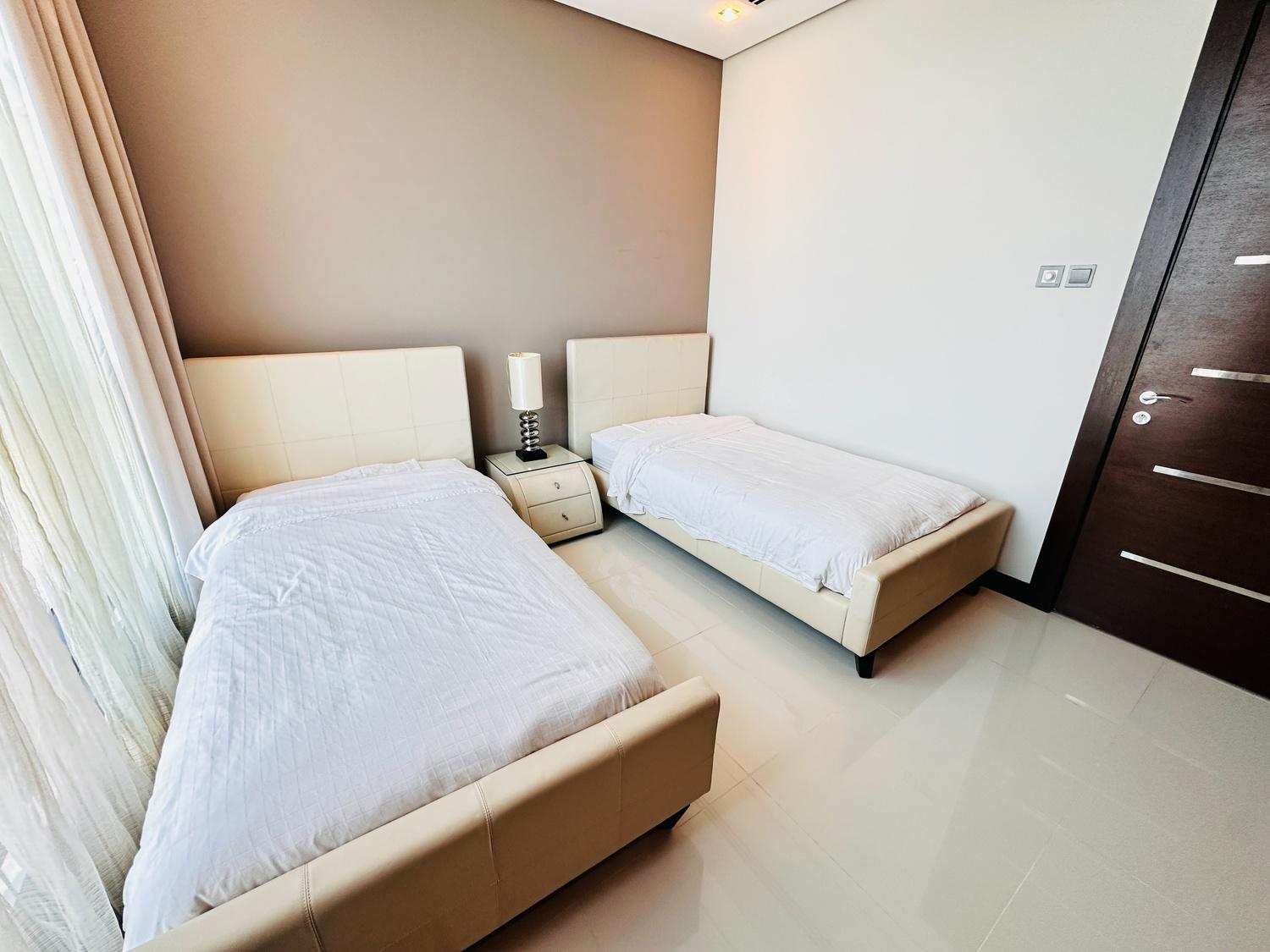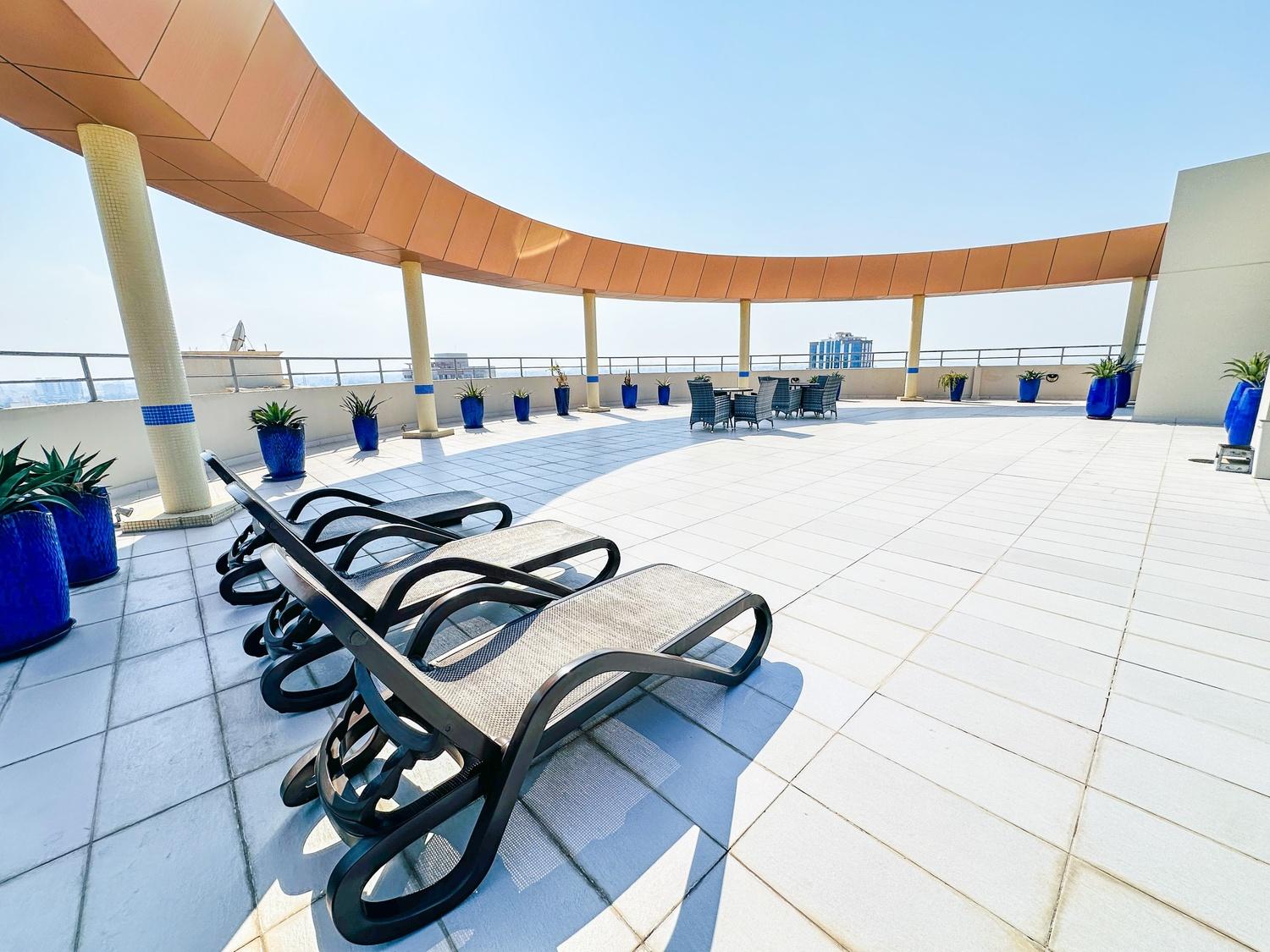 This modern fully furnished 2-bedroom apartment offers a bright living space with beautiful city and sea views. Located near Seef Mall, it features a living hall, dining area, closed kitchen, laundry space, and central AC. Residents enjoy access to excellent facilities including a pool, gym, BBQ area, steam, and sauna. Inclusive of EWA (30 BD cap), internet, and housekeeping. One parking provided.