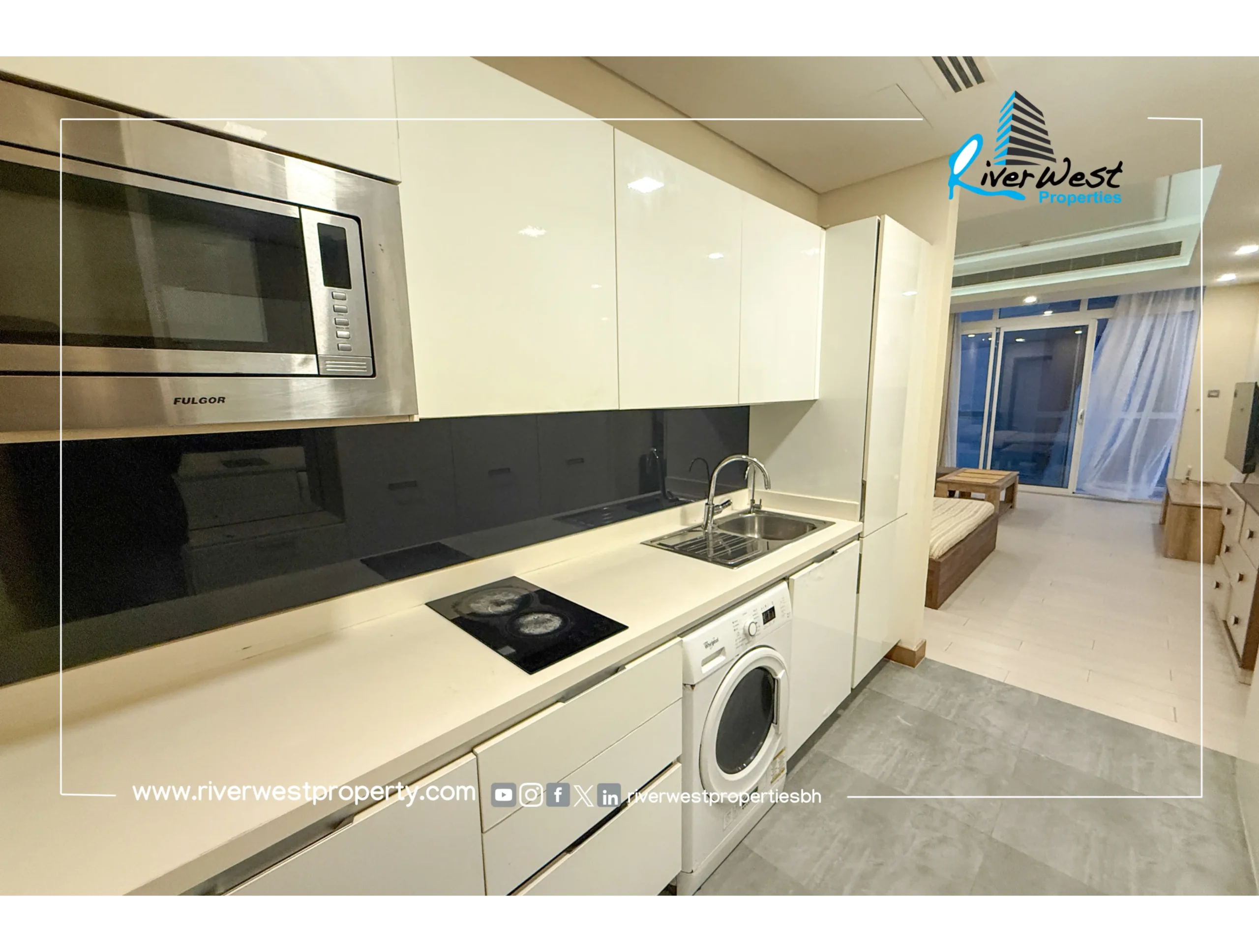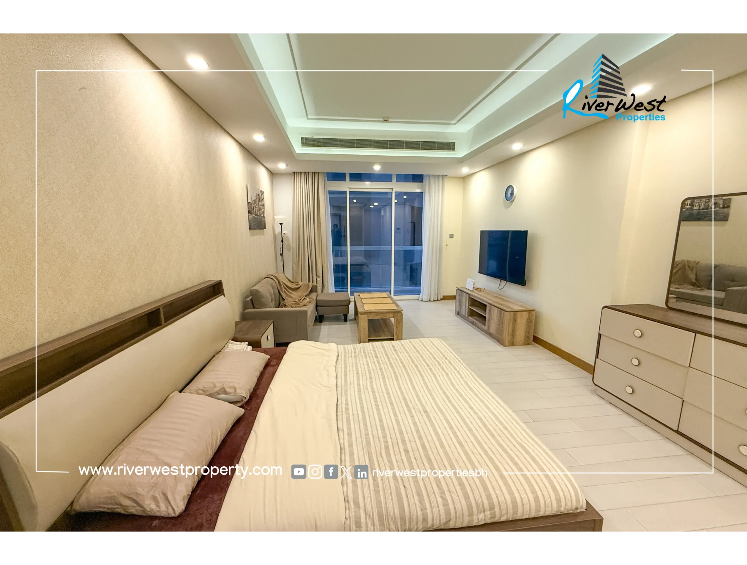 A studio apartment for rent in Juffair offering a spacious layout, private balcony and high-quality furnishing. Located near Al Osra Supermarket and Al Fateh Mosque, this apartment is ideal for professionals seeking a central and convenient lifestyle.
